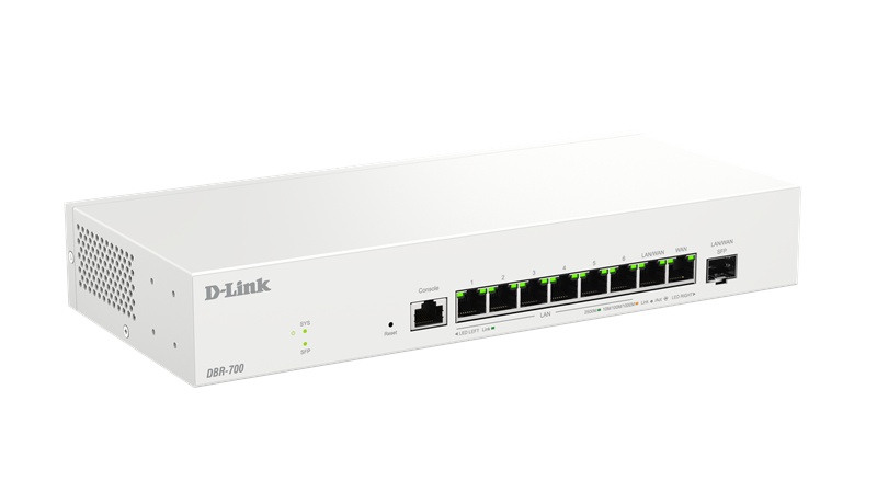 The DBR-700 delivers high-performance networking with a 2.5GE WAN port and eight 2.5GE ports for fast and reliable connectivity. Ideal for small offices and cafes, offering flexible and enough bandwidth for your network. With a 2Gbps firewall and IPsec VPN tunnels, it ensures secure remote access. Built-in AP management simplifies wireless access point control, making it an excellent choice for businesses seeking efficient and secure network solutions.